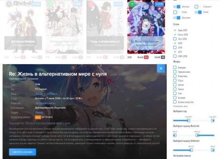 - Выводом аниме и манги за неделю и блоком с самым просматриваемым;