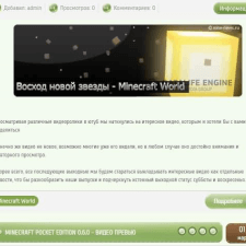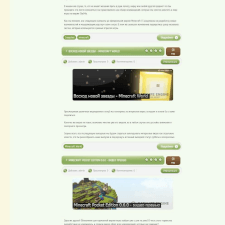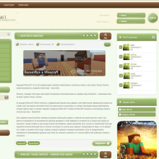 Шаблон оформлен в привлекательных светлых и зеленых цветах с выражением блоков. Оформлены в цветах самого игры. Верстка не «плывет» и отображается на смартфоне без ошибки. В центральной части страницы выводится контент. Шапка сайта содержит минималистический логотип, вход в панель админов для пользователя. Страница поиска в левой части сайдбара, а там раздел навигации сайта. В правом верхнем углу выводятся лучшие игроки в зависимости от количества публикаций и комментарий.