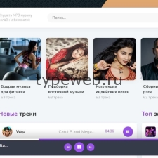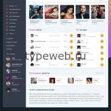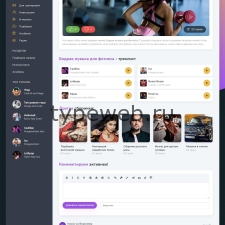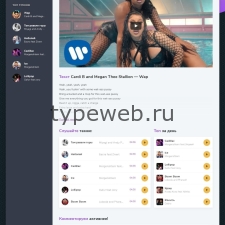 Исполнен в сочных медовых и сиреневых оттенках. Изнаночная сторона фона шаблона неординарно отделяется темными цветами, смотрится это очень красиво и выделяет вебсайт между массы аналогичных вебсайтов. Изнаночная колонка шаблона например же исполнена в черных цветах. В ней возможно расположить меню с жанрами в выпадающих списках. Для прибавления исполнителей и сборников в шаблоне есть отдельные tpl файлы короткой и абсолютной новости.