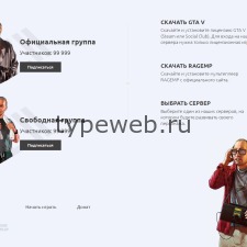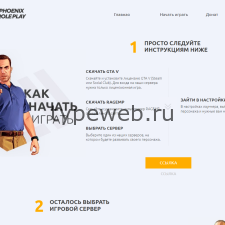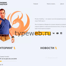Красивый шаблон для вашего игрового проекта. Шаблон выполнен в светлых тонах с оранжевыми элементами. Шаблон имёт 3 основных раздела. На главной странице расположился список серверов, новости проекта, Как начать игру. В разделе Донат, пользователь пополняет свой игровой баланс. Play: Как начать играть.