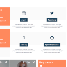 Шаблон поставляется с центральным слайдером и анимированными элементами при прокрутке страницы.