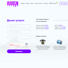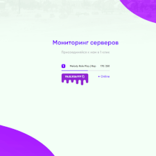 Стиль шаблона выполнен в белых тонах с фиолетовым светом, что очень приятно смотрится. Кнопки и элементы анимированные. Встроен мониторинг серверов с подключением к серверу. Так же присутствует донат услуги, что является плюсом данного шаблона. Вы сможете сразу пополнить баланс или купить услуги, находясь на сайте. Так же присутствует много других плюшек.