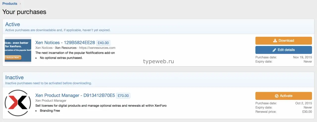 XR Product Manager - плагин XenForo 2 который позволяет вам организовать продажу различных товаров. Платежи могут производиться с использованием любого из поставщиков платежей, включая PayPal, Stripe и Braintree. Дополнительные поля, добавление и редактирование товаров, акции и купоны на скидку и множество других функций!