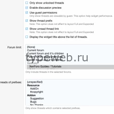 Поддержка дополнительных опций для потоков виджетов. Очень похоже на темы фреймворка виджетов и имеет гибкую настройку через админ-панель XenForo